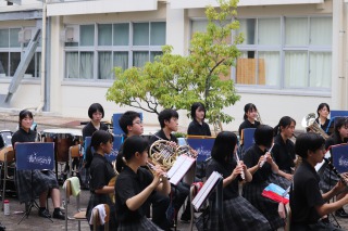 6月9日(木) 放課後 、吹奏楽部(にいすい)による中庭コンサートが開催されました。 演奏を聴いている生徒達が口ずさみたくなる人気曲を数曲演奏し、アンコールでは今年度のにいすいテーマ曲「オーメンズ オブ ラブ」を披露しました。 3年次生はこれで引退となります。これまで1、2年生を引っ張ってくれてありがとうございました。 部活動で見せてくれた頑張りを今度は進路実現に向けて存分に発揮してください。応援しています 。