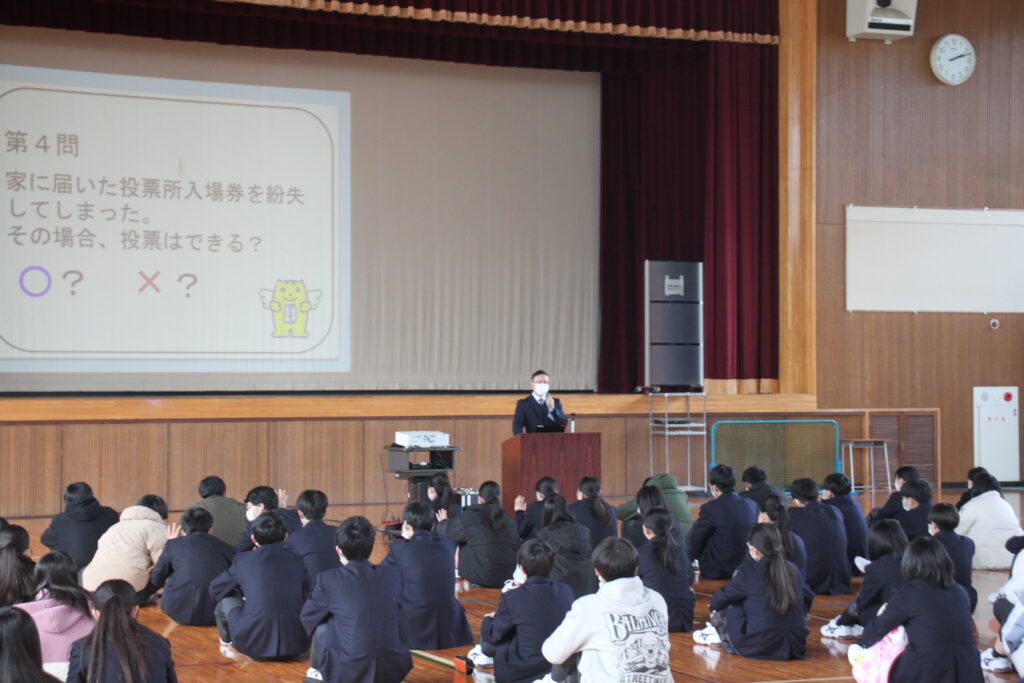 本校体育館にて,1年次18期生は主権者教育を行いました。