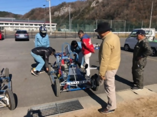 12月6日(土) 新見市防災公園にて第23回全日本高等学校ゼロハンカー大会(12月21日実施)に向けた試走を行いました。早朝から入念にエンジンの調整やセッティングを行い、コースをセットしてハンドリングやアクセルワークなど周囲からアドバイスをもらい、自分の感覚を話しながら走行の調整に励みました。まだまだ多くの調整が必要です。限られた時間で精一杯の準備をしたいと思います。13日(土)同じく試走の予定です。良ければ様子を見に来てください!