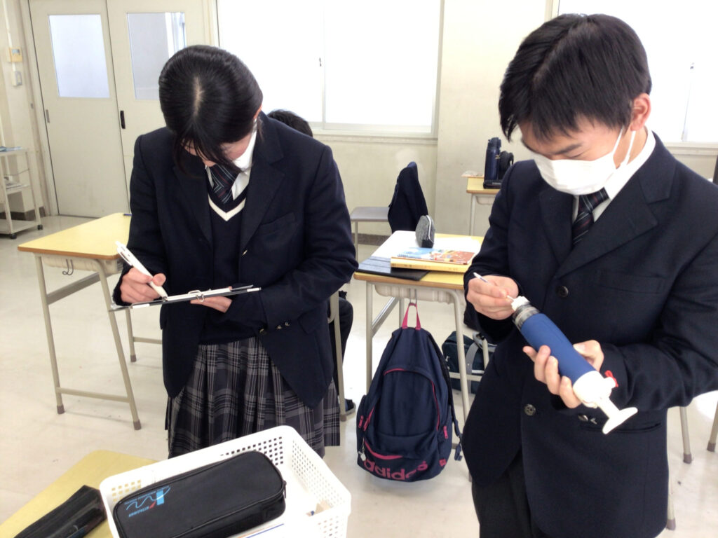 12月10日~12日のお昼休みに、各教室の二酸化炭素濃度検査を保健委員が行いました。