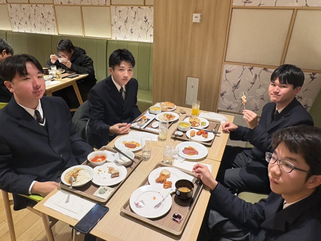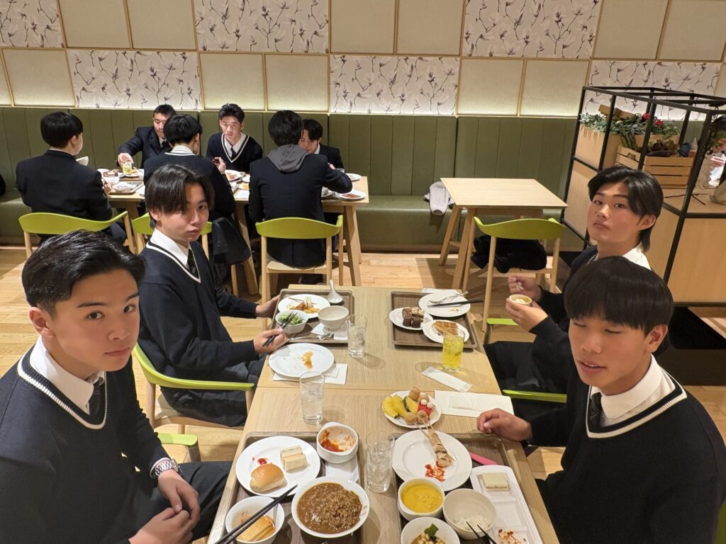 最後はホテルビュッフェでした!浅草でたくさん食べてきた生徒も多くホテルに来る前は「もう食えんす」と言ってた生徒もいましたが、現地につくとクリスマス特別メニューの目新しい料理を目の前にお腹も限界突破!!たくさんの料理、スイーツ、ソフトクリームまで何度も何度もおかわりして最高のひとときを最後楽しみました。