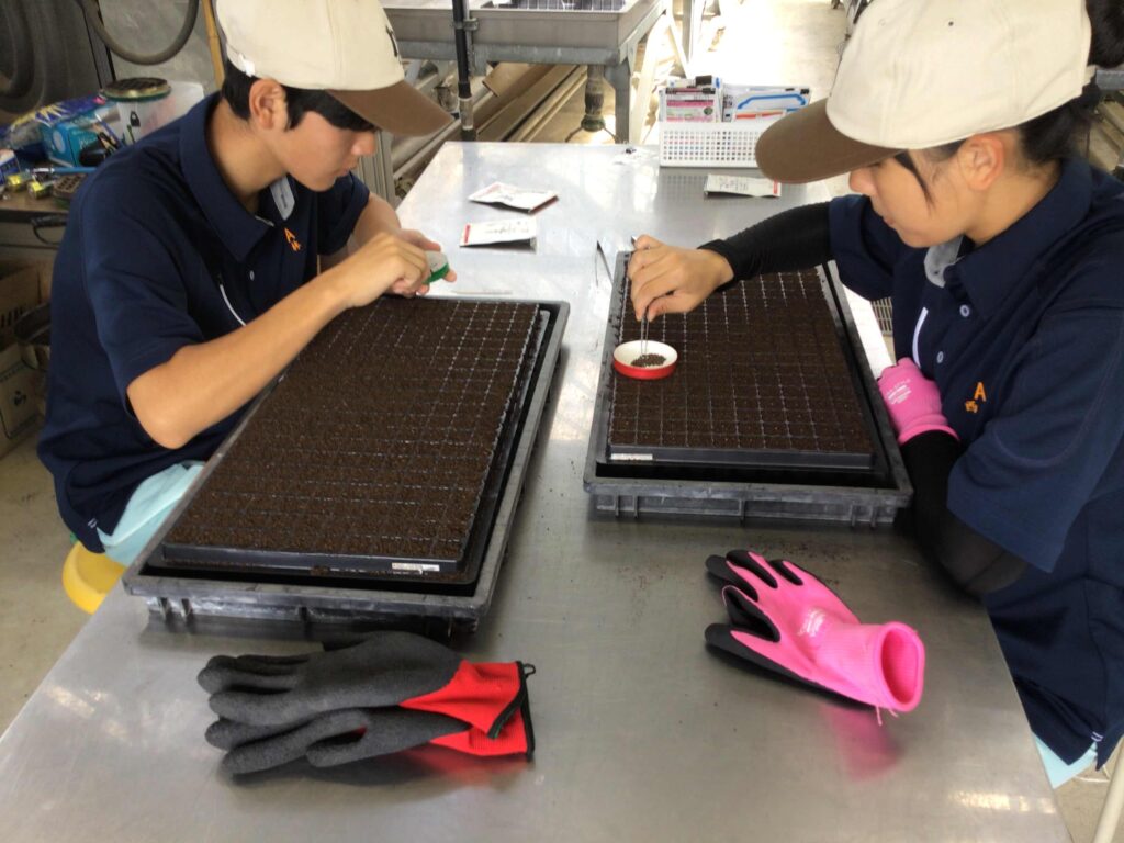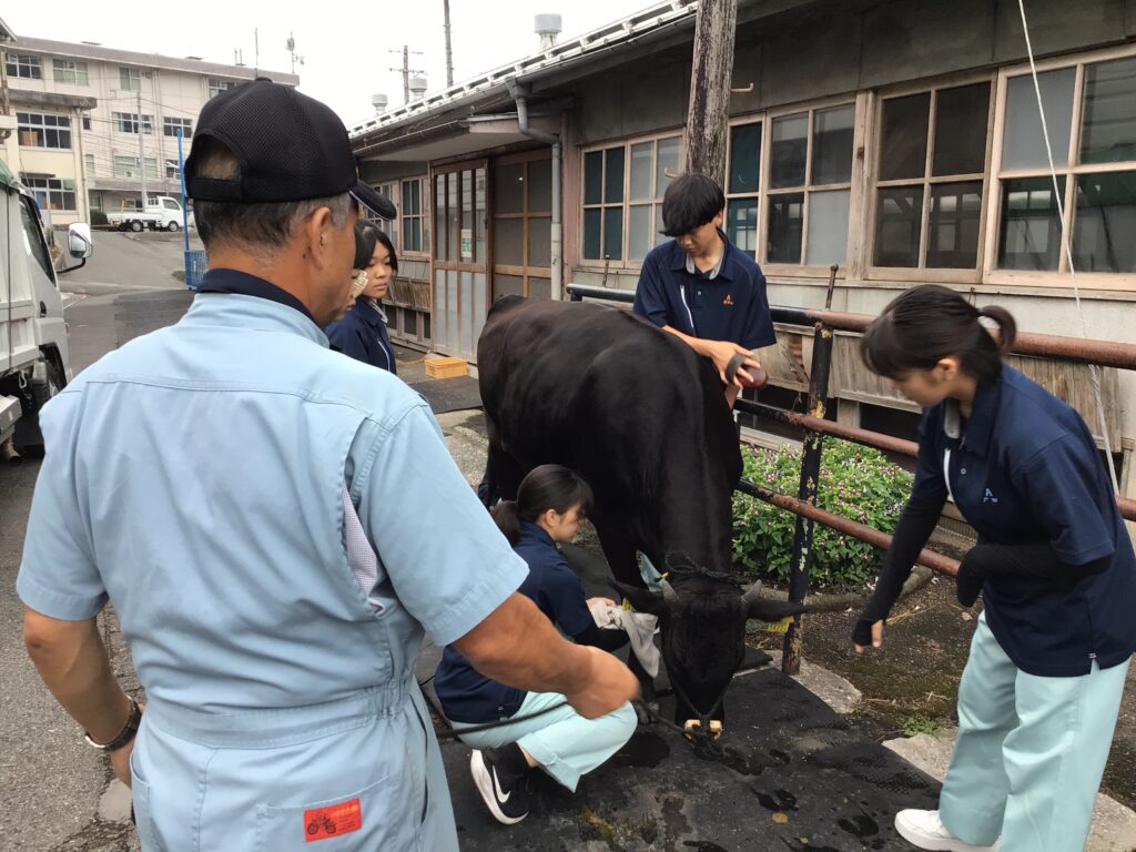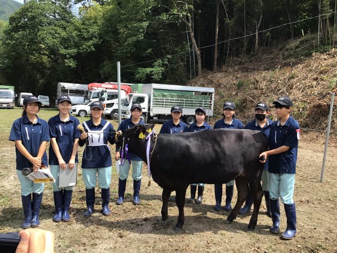 生物生産科では7、8月に夏野菜の収穫と出荷、冬に向けた花の準備、畜産共進会に向けた牛の管理などをしました。8月27日の新見市家畜共進会では生物生産科で管理した雌牛「みそら号」が大会最高位のグランドチャンピオンになりました。その時の様子です。