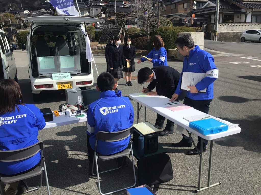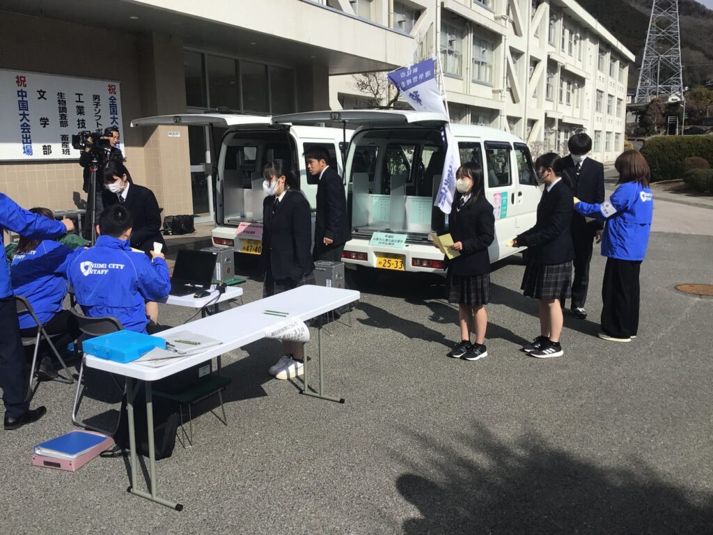 こちらの移動式投票所は、令和5年に当時の本校普通科2年生の「新見市内の選挙における投票率向上についての陳情」をきっかけにできたものです。