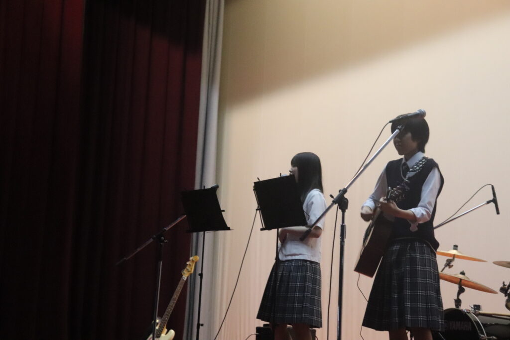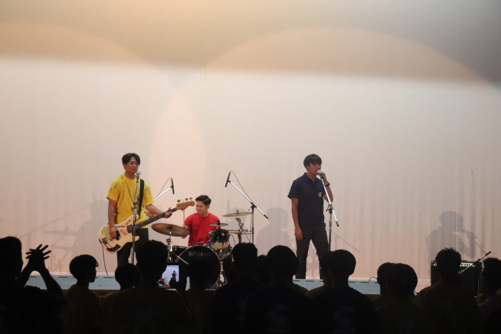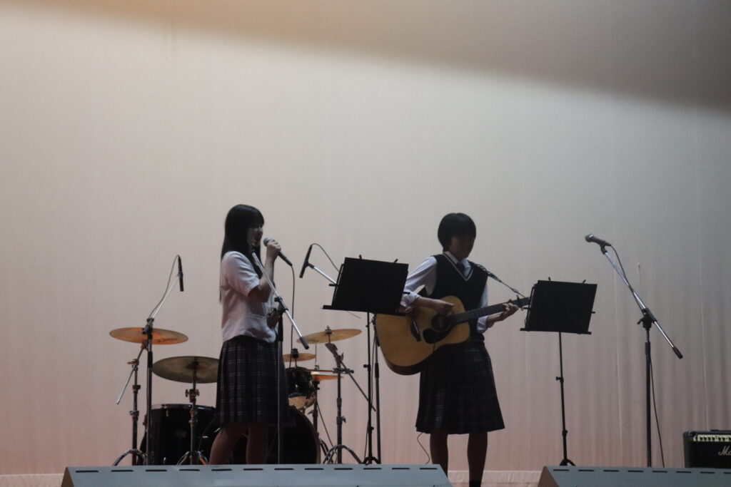 同時進行で、体育館のステージでは有志によるステージ発表が行われました。2組のバンドが演奏を披露し盛り上がっていました。素敵な歌声と迫力満点の演奏をありがとうございました!!