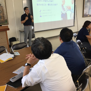 北島先生の軽快かつ引き込まれるお話に加え、参加者は4〜5人の小グループに分かれ、いくつかのワークを実践的に行う形式で進められました。